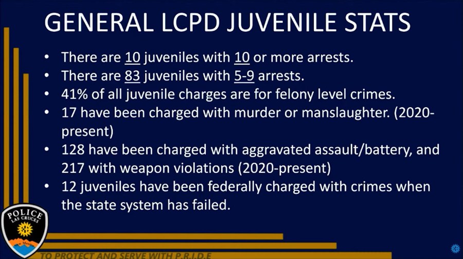 To illustrate the gravity of the situation, Story shared some statistics from LCPD regarding juvenile crime in Las Cruces from 2020 to the present. These figures highlight the prevalence of violent behavior among young people in the area.